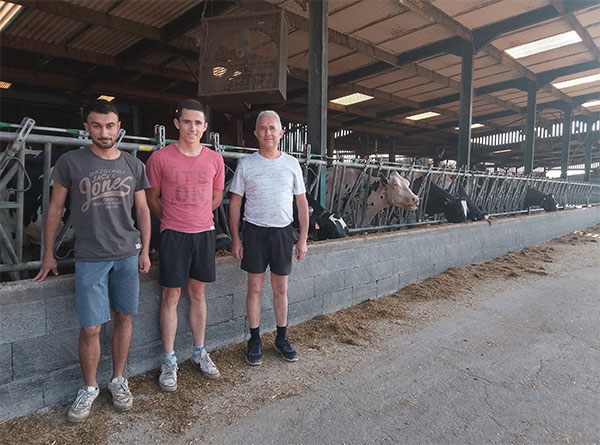 Antonin Durand et Élie Sire souhaitent allier rentabilité, performance et bien-être animal. Une philosophie qui prolonge le travail entrepris par le père d’Antonin, Vincent Durand, aujourd’hui retraité. Les deux associés cherchent à produire un lait de qualité sans augmenter les coûts ni le temps de travail et d’astreinte. Leur objectif est de maintenir une production moyenne d’au moins 35 kg de lait par jour, tout en conservant une autonomie fourragère avec une ration de base de qualité (UF + correcteur soja / colza). « Pour nous, la Prim’holstein a un vrai potentiel : elle peut produire beaucoup, avec d’excellents taux. Mais pour atteindre ce niveau, la ration de base doit être irréprochable. C’est ce qui nous pousse à nous remettre en question pour faire évoluer constamment notre système. »