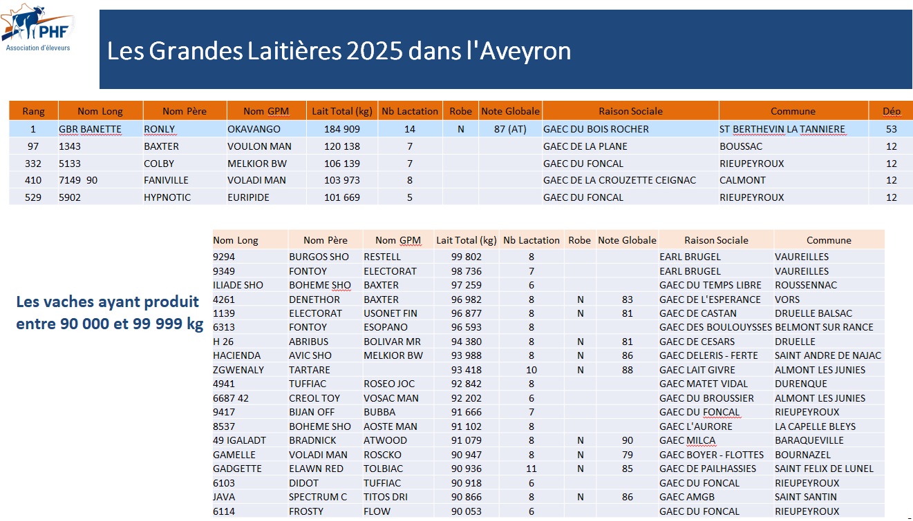 La séance a également permis de récompenser les « performeuses » du département : 23 vaches ont été mises à l’honneur pour avoir produit plus de 90 000 kg de lait !
