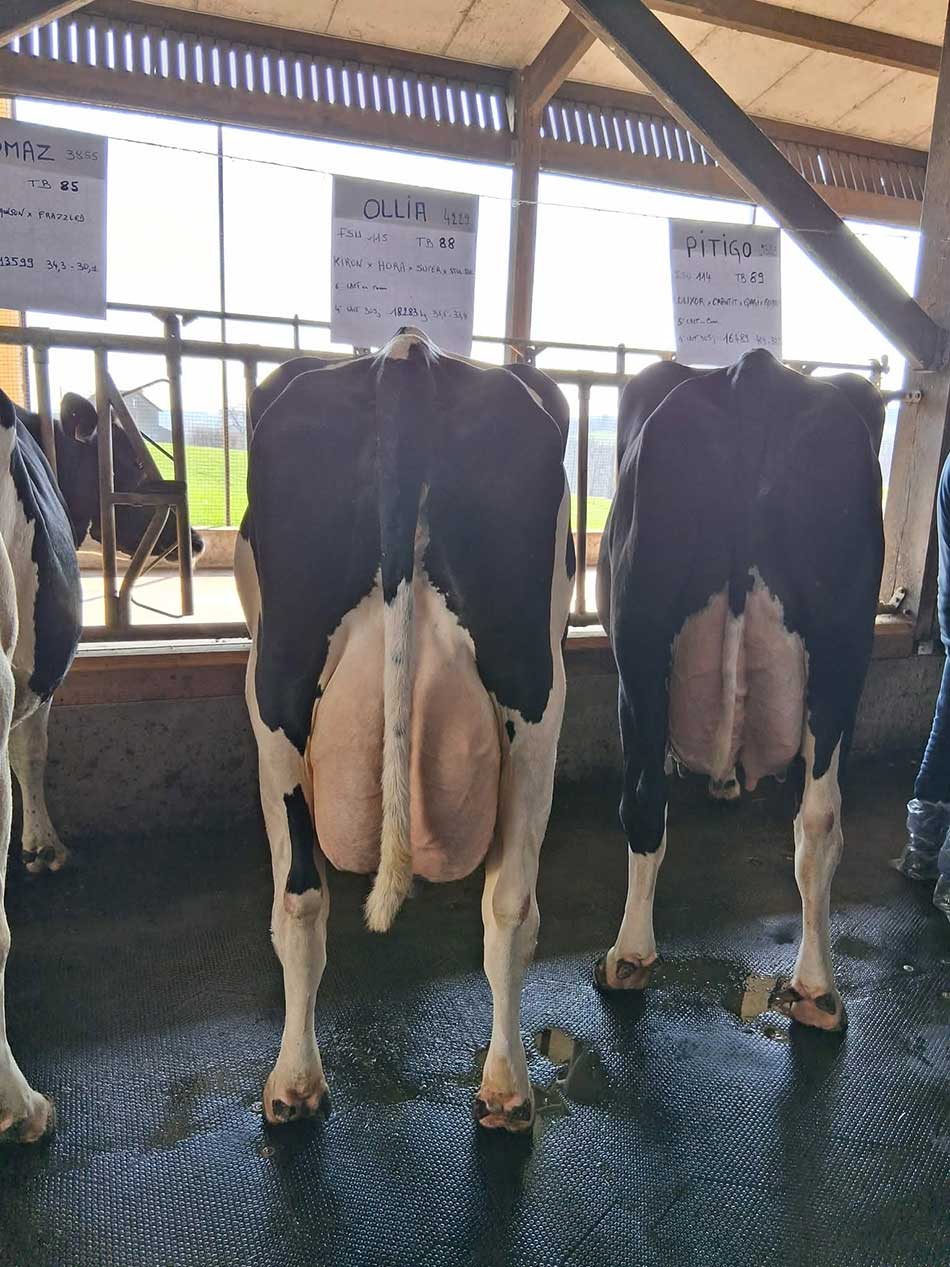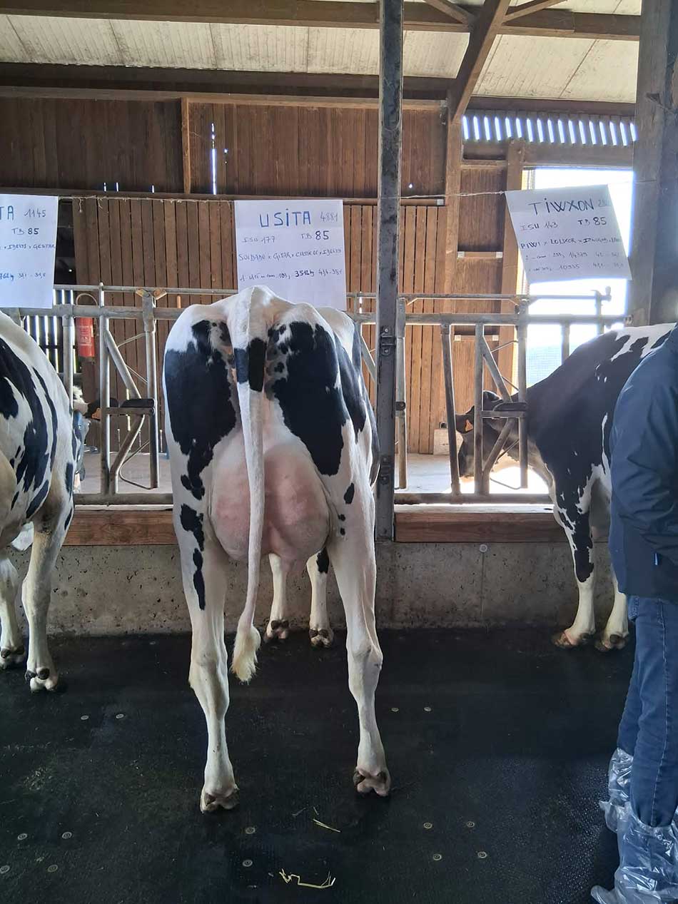 La présentation de plusieurs vaches issues de familles marquantes du troupeau a permis d’illustrer l’équilibre recherché entre niveau de production et morphologie fonctionnelle.
