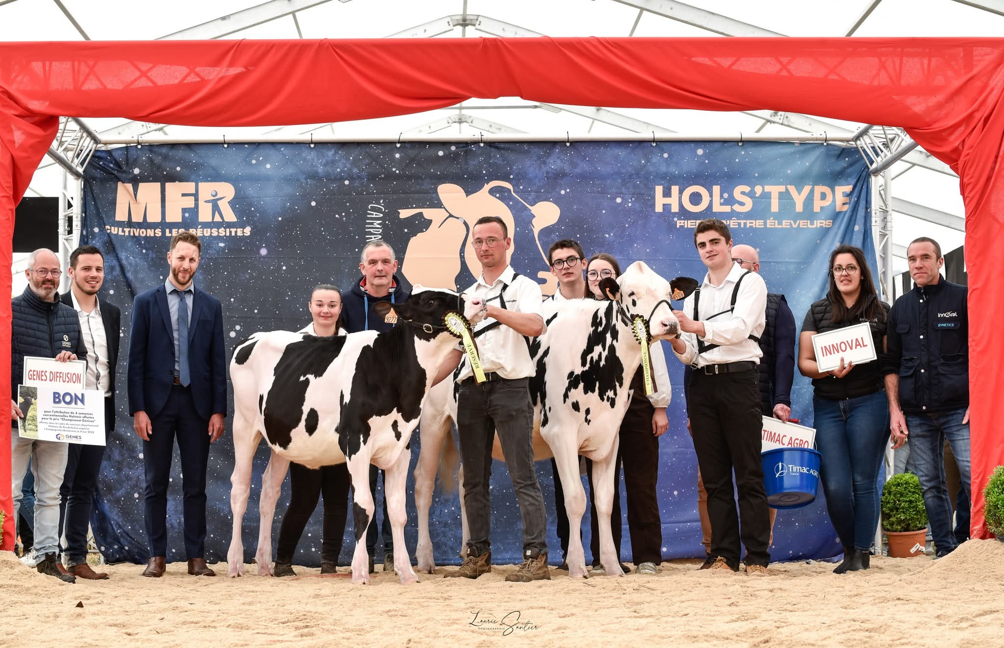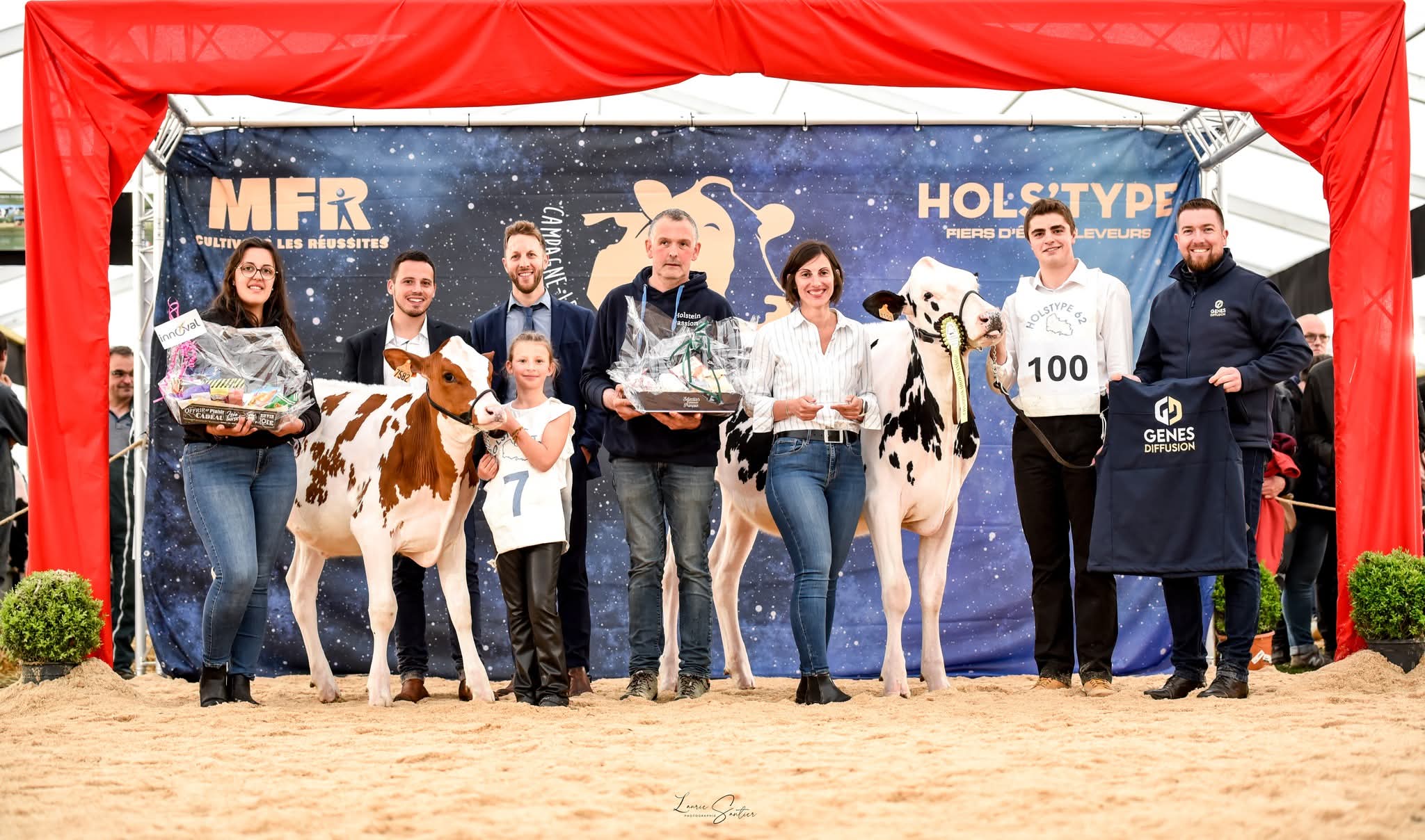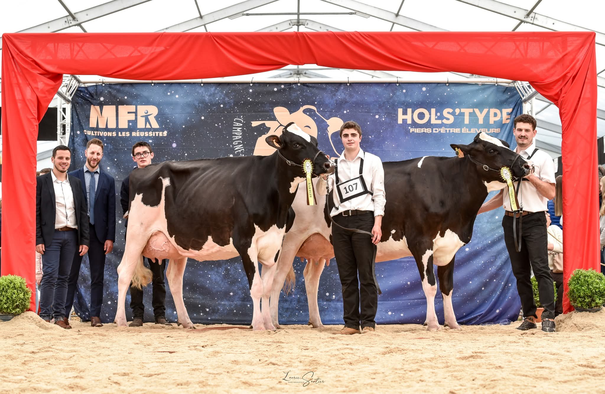 Championne génisse Malaitis Violette (Chief Stan X Fitz Toc) du l’Earl Holstein Passion et sa réserve Vignette (Amen PP x Chief Stan) du Gaec Degrugillier.